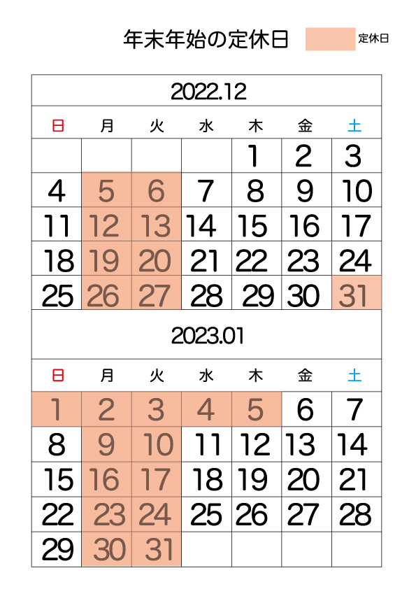 年末年始は以下の予定となっております。